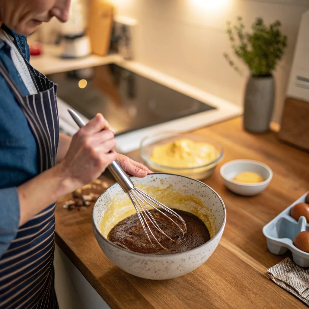 - Add Eggs – Whisk in the eggs one at a time, beating well after each addition. This creates that glossy, fudgy texture brownies are famous for.