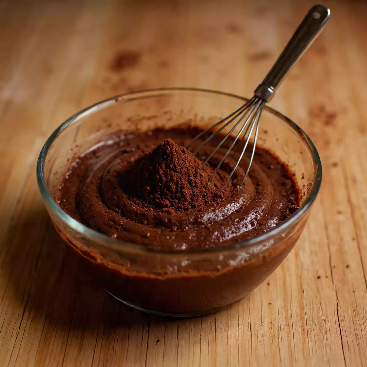 | 4 | Gradually mix the wet and dry ingredients. Slowly add hot coffee, whisking until smooth. |