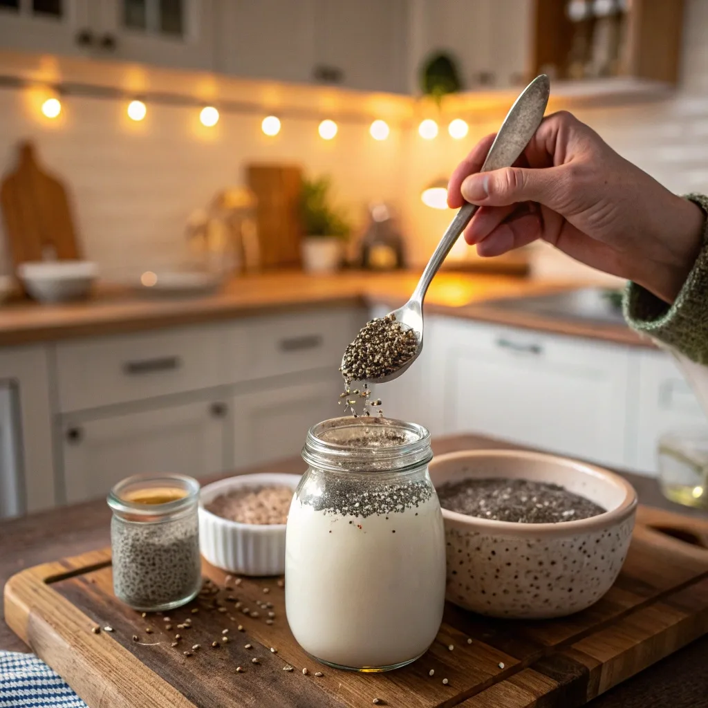 Allow the mixture to rest for 5–10 minutes, then stir again. This second stir ensures an even texture as the chia seeds begin to swell. - Refrigerate Overnight