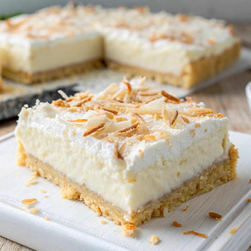 Imagine sinking your teeth into a square of this dessert; the cool and creamy filling contrasts beautifully with the slightly firm crust, creating a delightful experience for your taste buds. Each bite bursts with the rich, tropical flavor of coconut, perfectly complemented by the subtle sweetness of the filling and the crunch from the crust.