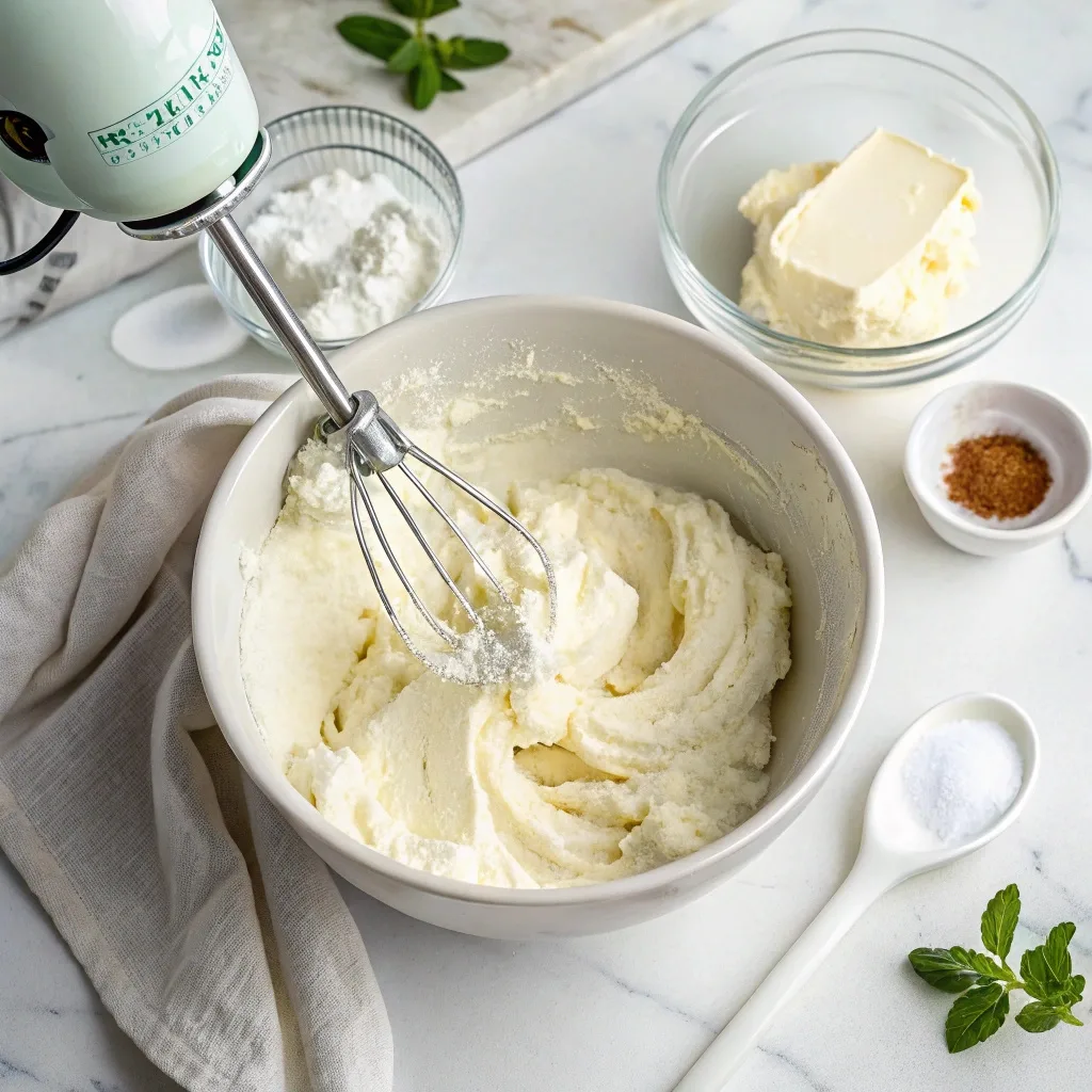 2. Whip the Creamy Filling: In a separate bowl, beat the softened cream cheese and softened butter together until the mixture is completely smooth and creamy. You don’t want any lumps of butter lingering! Next, gradually beat in the sifted powdered sugar until it is fully incorporated and the mixture is light and fluffy—this should take about 2-3 minutes. This step introduces air and gives the finished bite a lovely, airy texture. Finally, mix in the vanilla extract and the star of the show, the peppermint extract. Give it a taste. Do you want more mint? Add another splash!