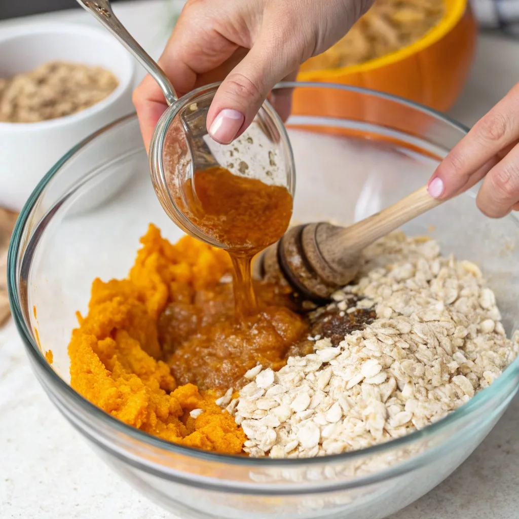| 1. Mix the Base | In a large bowl, combine 1½ cups of oats, ½ cup pumpkin puree, and ½ cup peanut butter. |