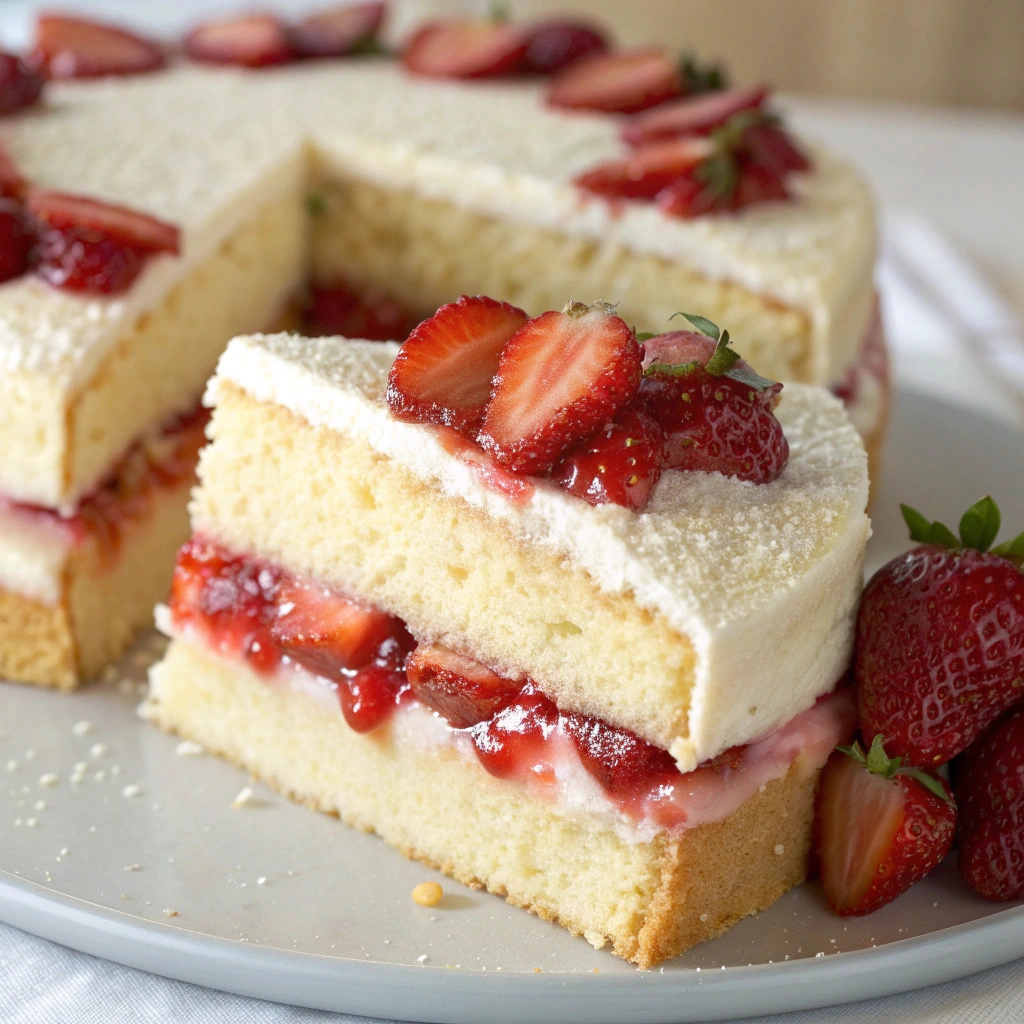 Soft Vanilla Shortcake Layers Filled with Juicy Strawberry Compote