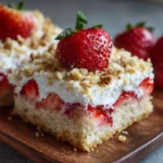 Once the cakes are cool, remove them from the pans. Place one layer on your serving platter and generously spread a layer of whipped cream over it. Scatter a portion of your sliced strawberries on top. Add the second layer of cake and repeat the process with more cream and strawberries. Feel free to pile on the whipped cream and strawberries—this is the fun part!
