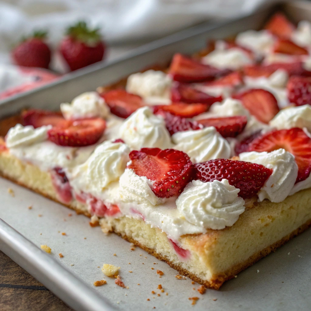 Sheet pan cakes have been a staple in American households, beloved for their ease of preparation and versatility. Growing up, my grandmother would put her spin on every season’s bounty with various fruits, but strawberries always were our favorite—simply because of their appealing color and flavor that added a special touch to family gatherings. Making this cake is a lovely way to honor that memory while creating new ones with my own loved ones.