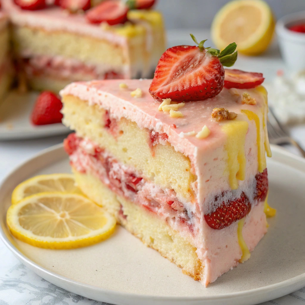 This Strawberry Lemonade Cake holds a special place in my kitchen narrative. I remember the first time I baked it for a family reunion. The joy on everyone’s faces when they took their first bite was unforgettable. It’s a cake that embodies the spirit of hospitality and togetherness, and I believe every slice tells a story of love and sunny summer days.