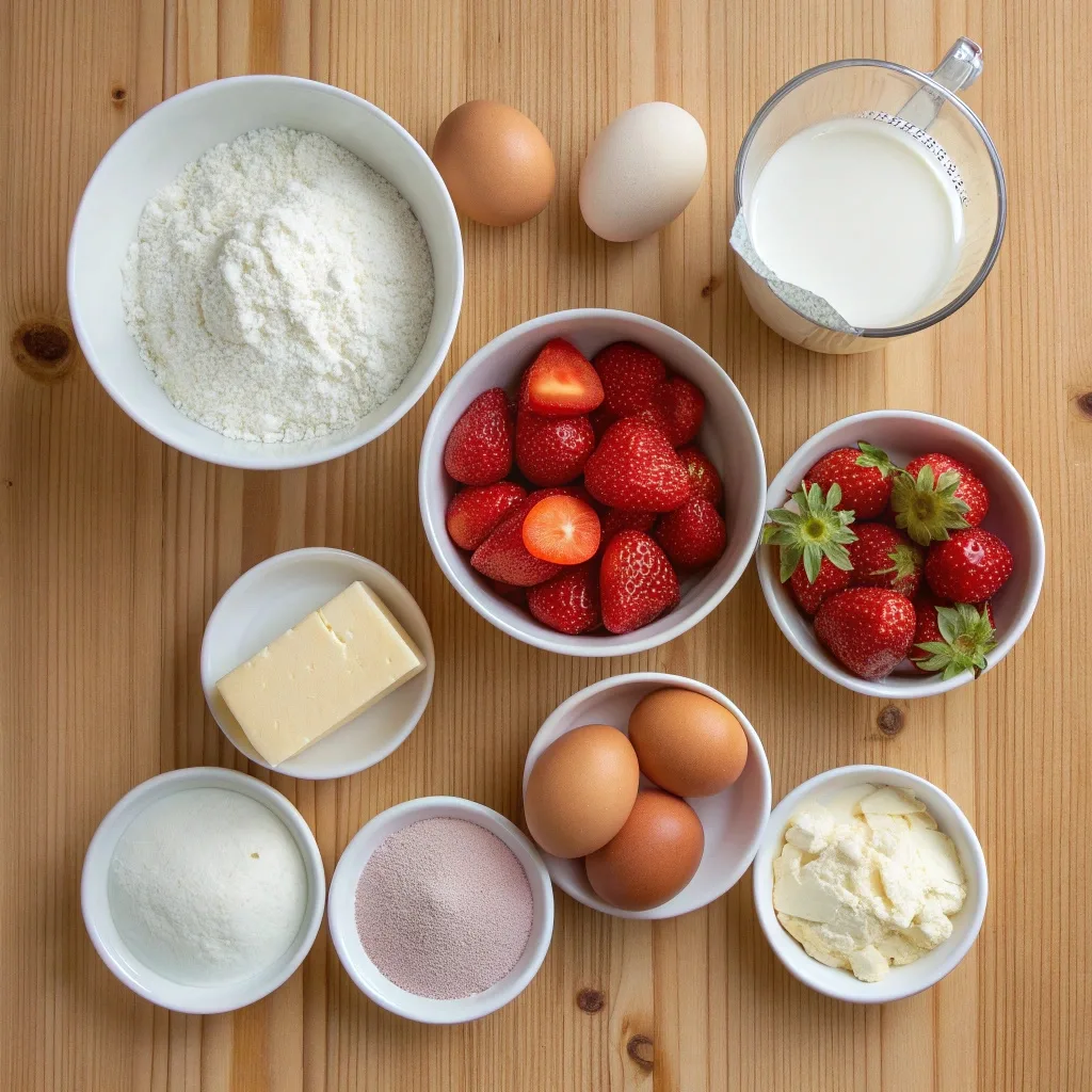 Before you start baking, gather everything you need to make your simple cake homemade masterpiece. Below are the key strawberry cake ingredients and why each one matters: