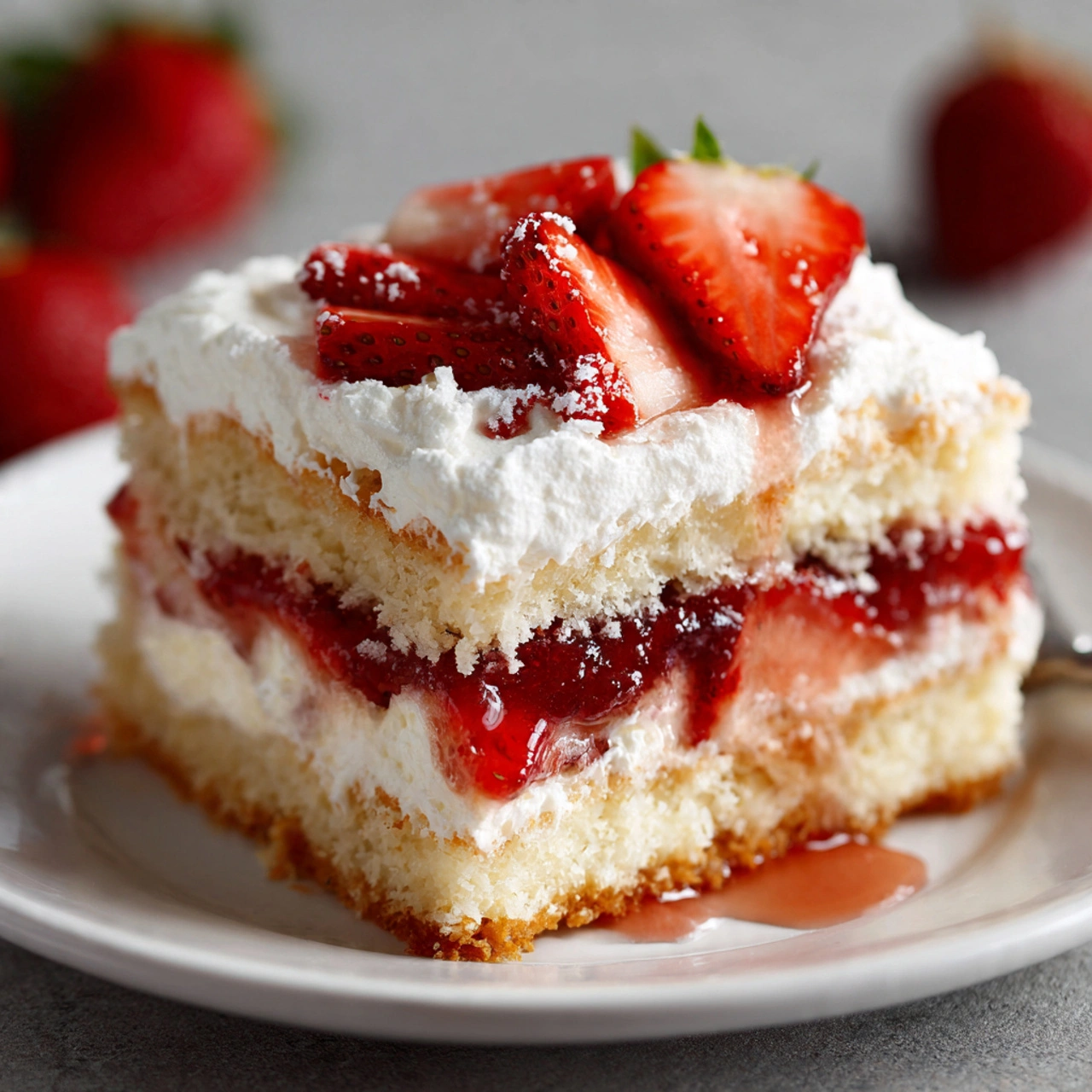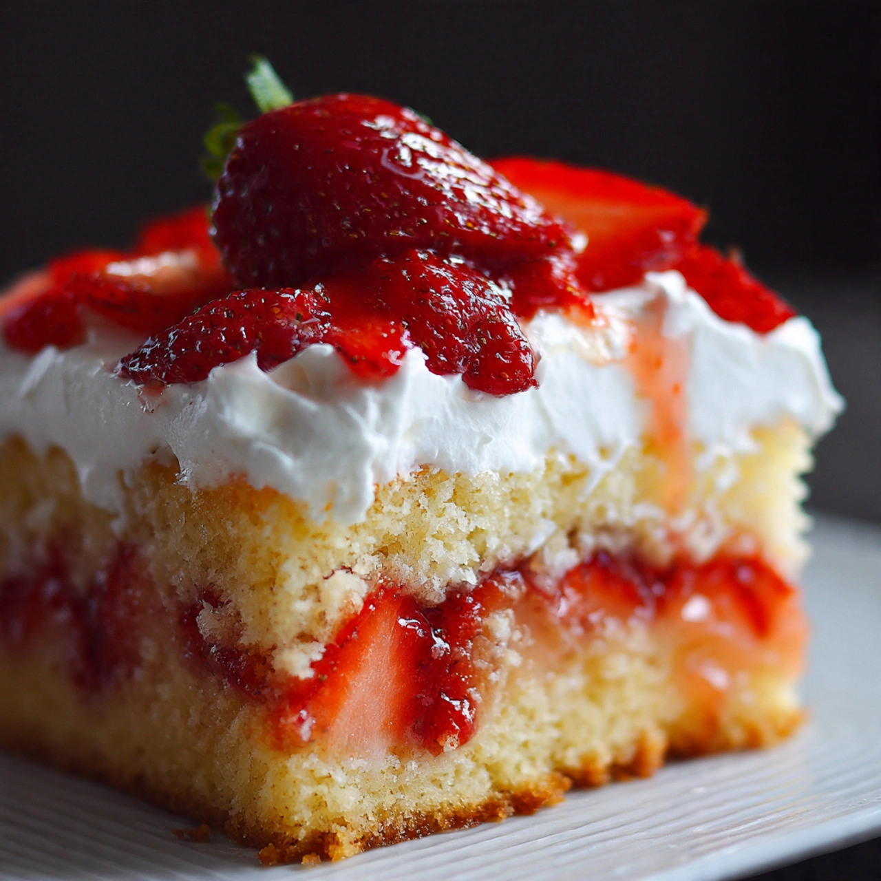 This Strawberry Shortcake Poke Cake is a unique twist on the classic strawberry shortcake. It’s layers of fluffy vanilla cake soaked in sweet strawberry puree, topped with whipped cream and fresh strawberries. Perfect for summer barbecues, brunches, or as a simple dessert to brighten your week, this cake is bound to be a crowd-pleaser. With its light, airy texture and refreshing taste, it embodies the essence of summer.