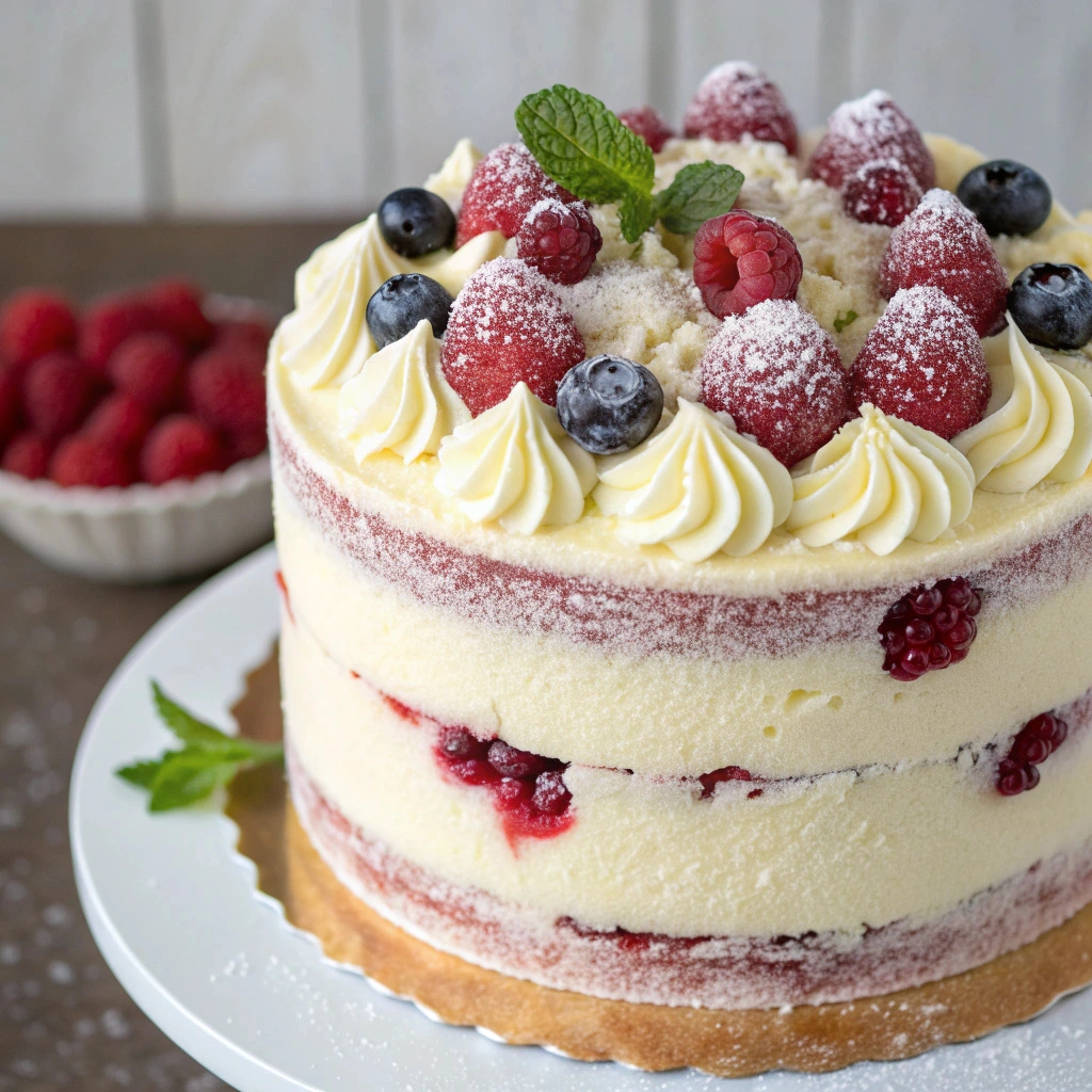 How to Make Vanilla Raspberry Birthday Cake Recipe with Velvet Sponge & Fresh Berries