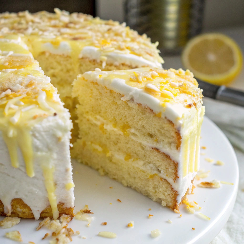 Zesty Lemon Coconut Cake with Creamy Vanilla Frosting
